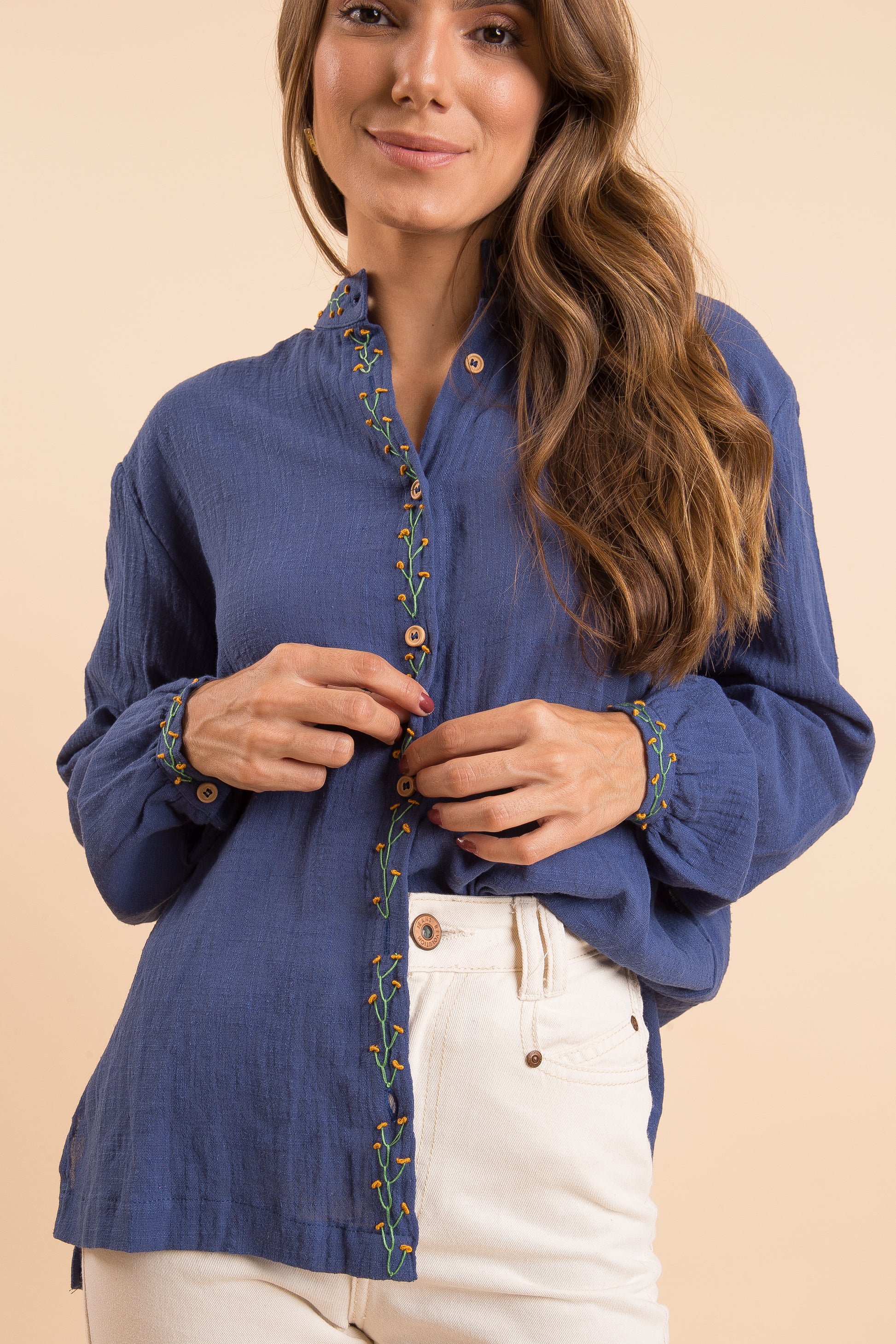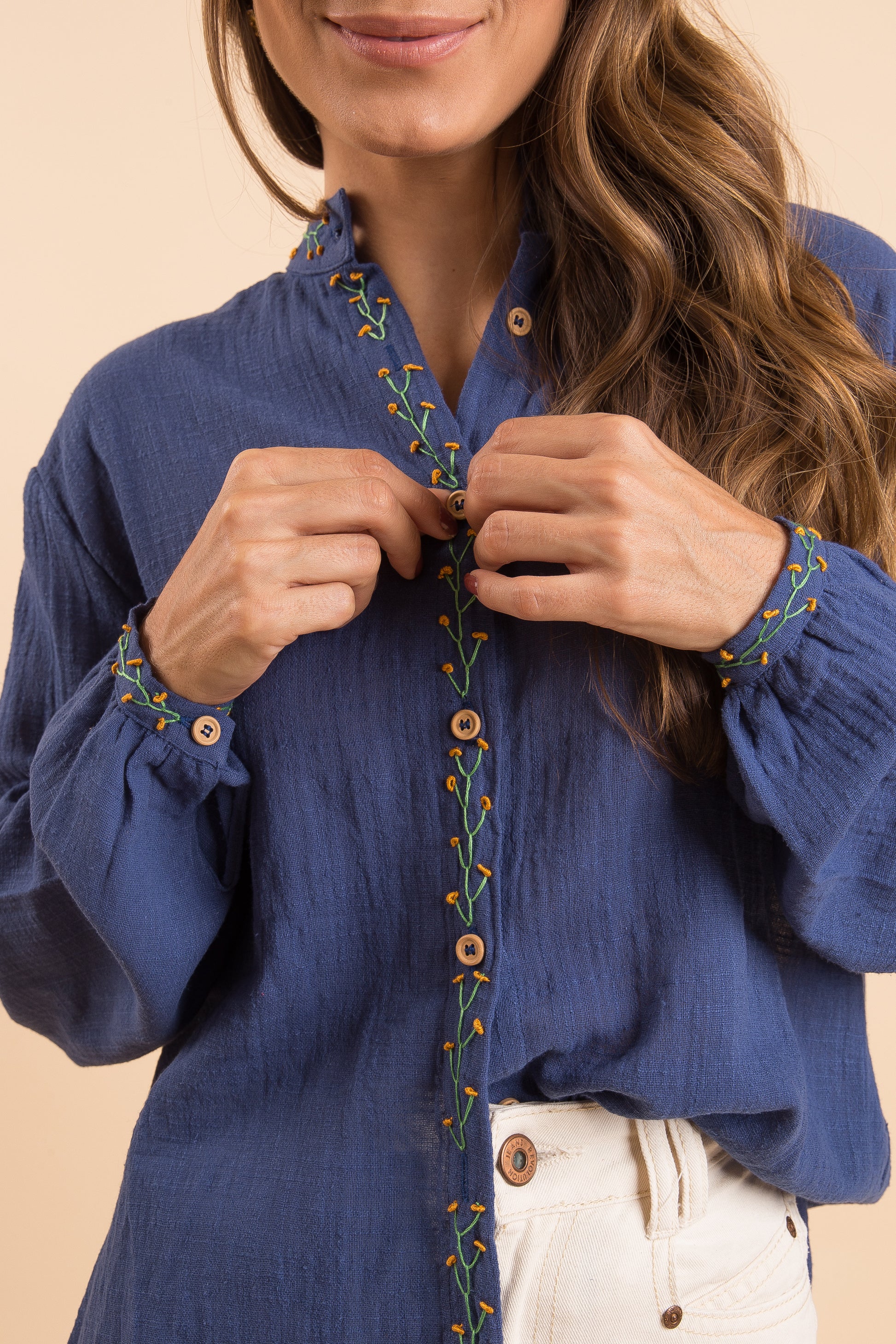 Detalhes florais bordados manualmente, tornando cada peça única!