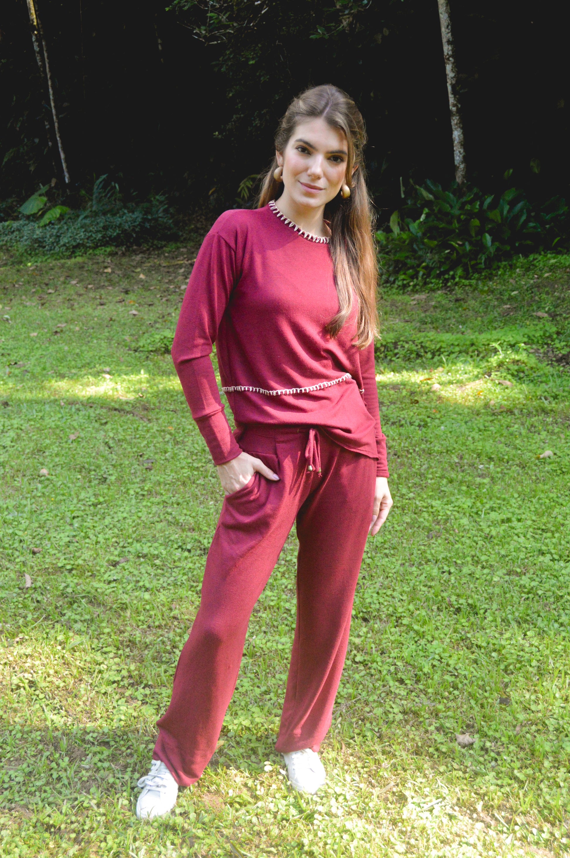 Conjunto de malha super confortável e arrumadinho ao mesmo tempo, seja para ficar em casa ou para sair.
