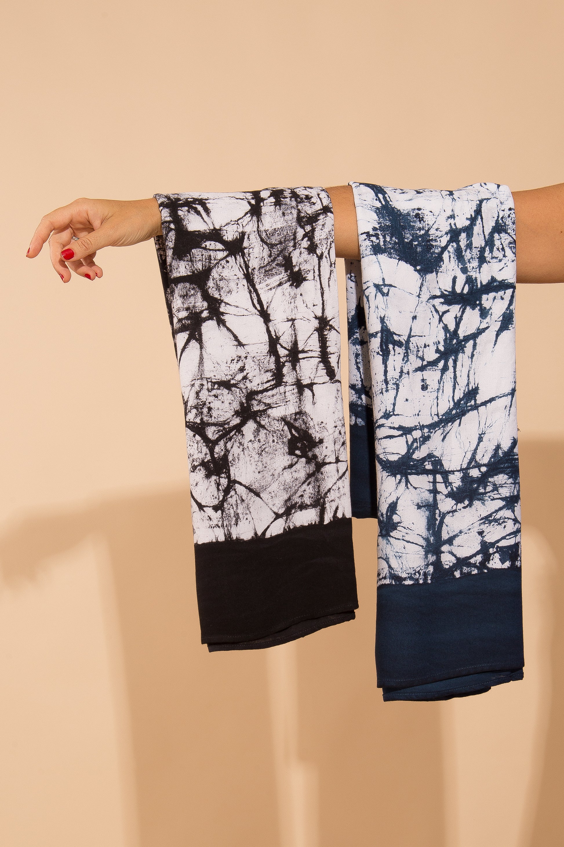 Nossas peças são tingidas manualmente e individualmente, o que possibilita desenvolvermos peças únicas e 100% artesanais, com técnicas Shibori, Tiedye e Batik.