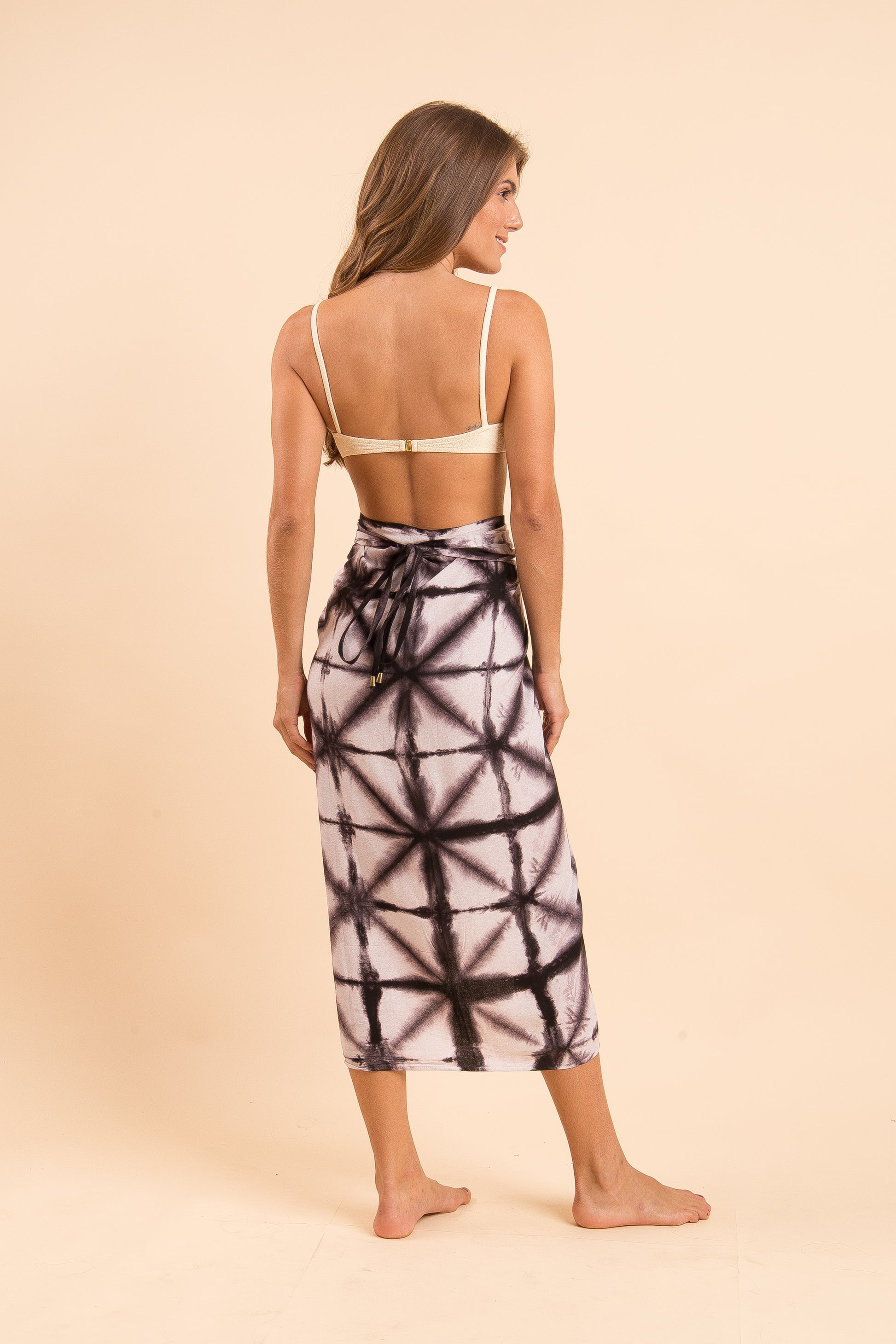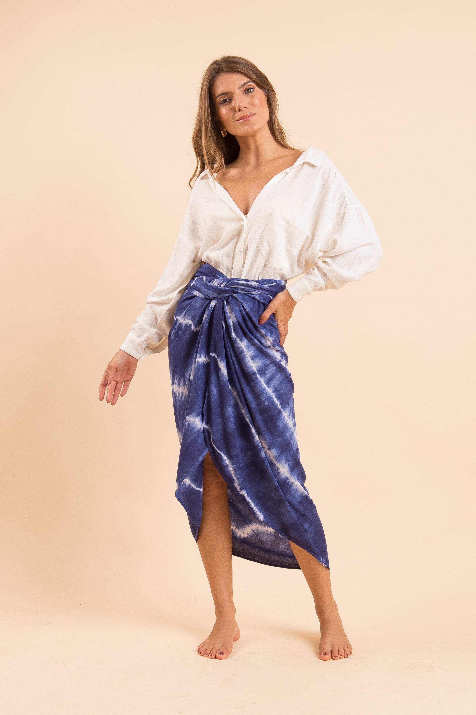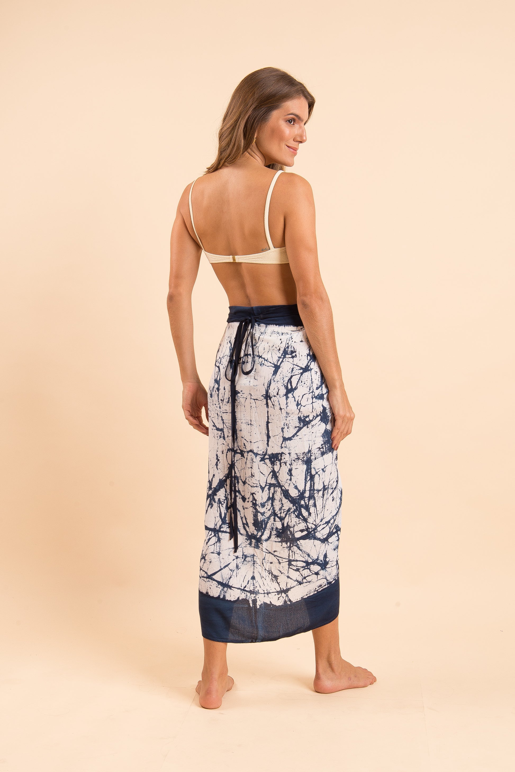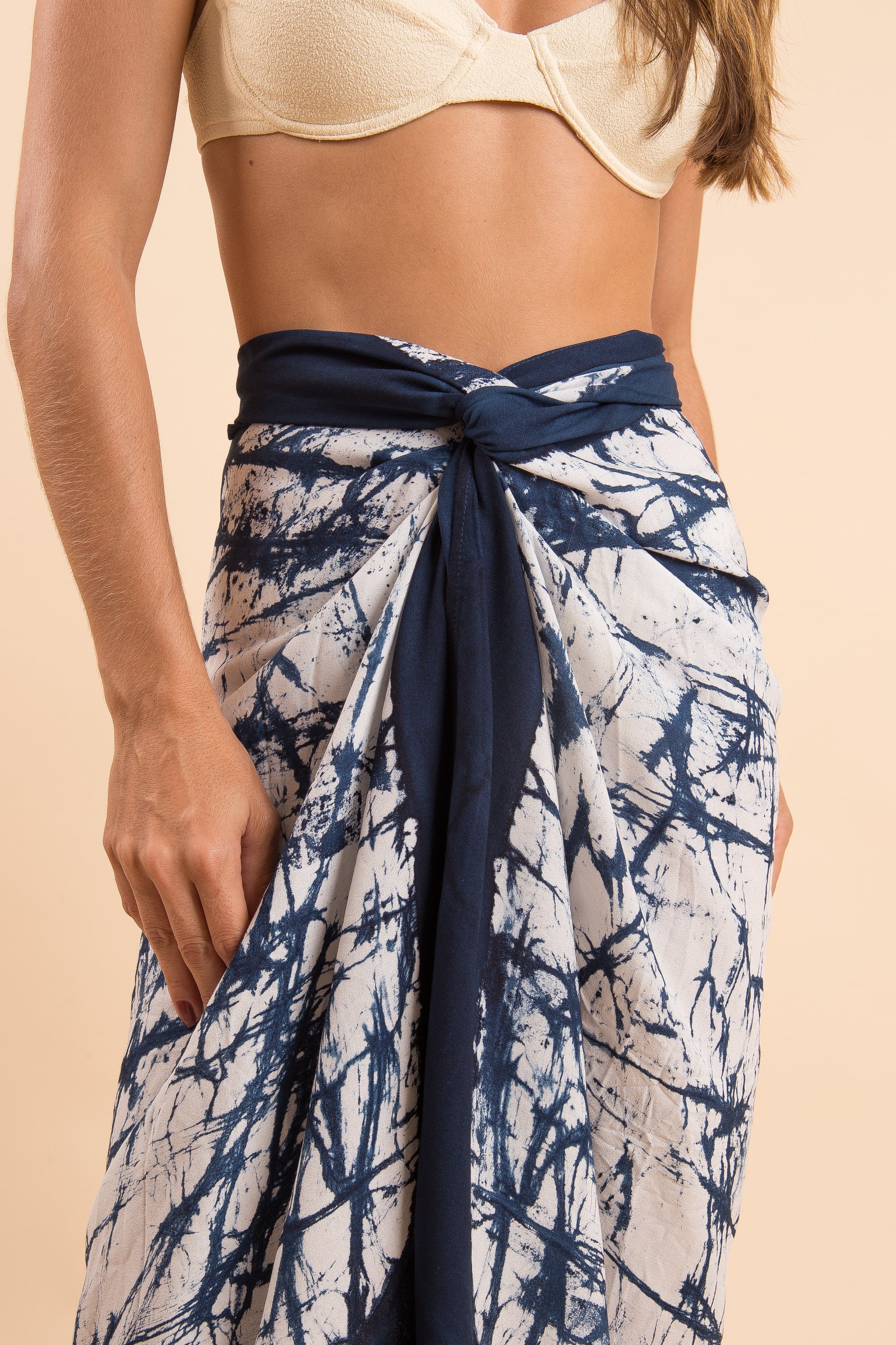 Detalhes: Fechamento por amarração com faixas; Tamanho único; Comprimento midi, sendo possível regular o tamanho da cintura através da amarração.