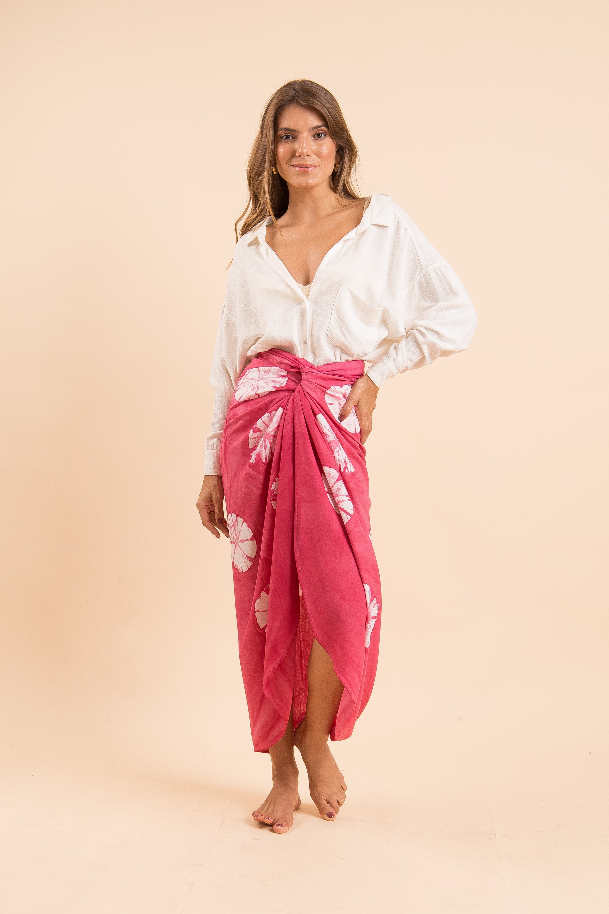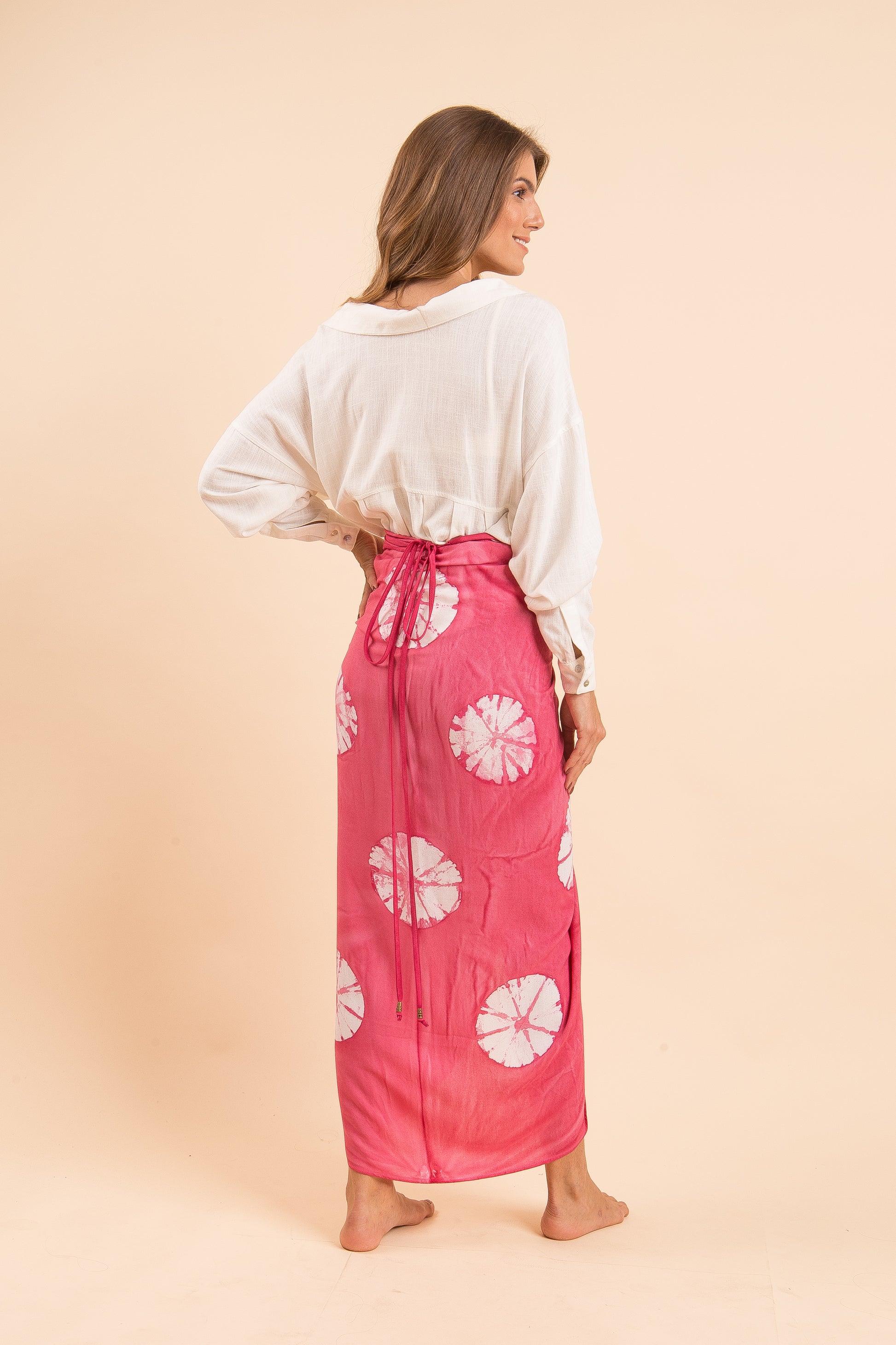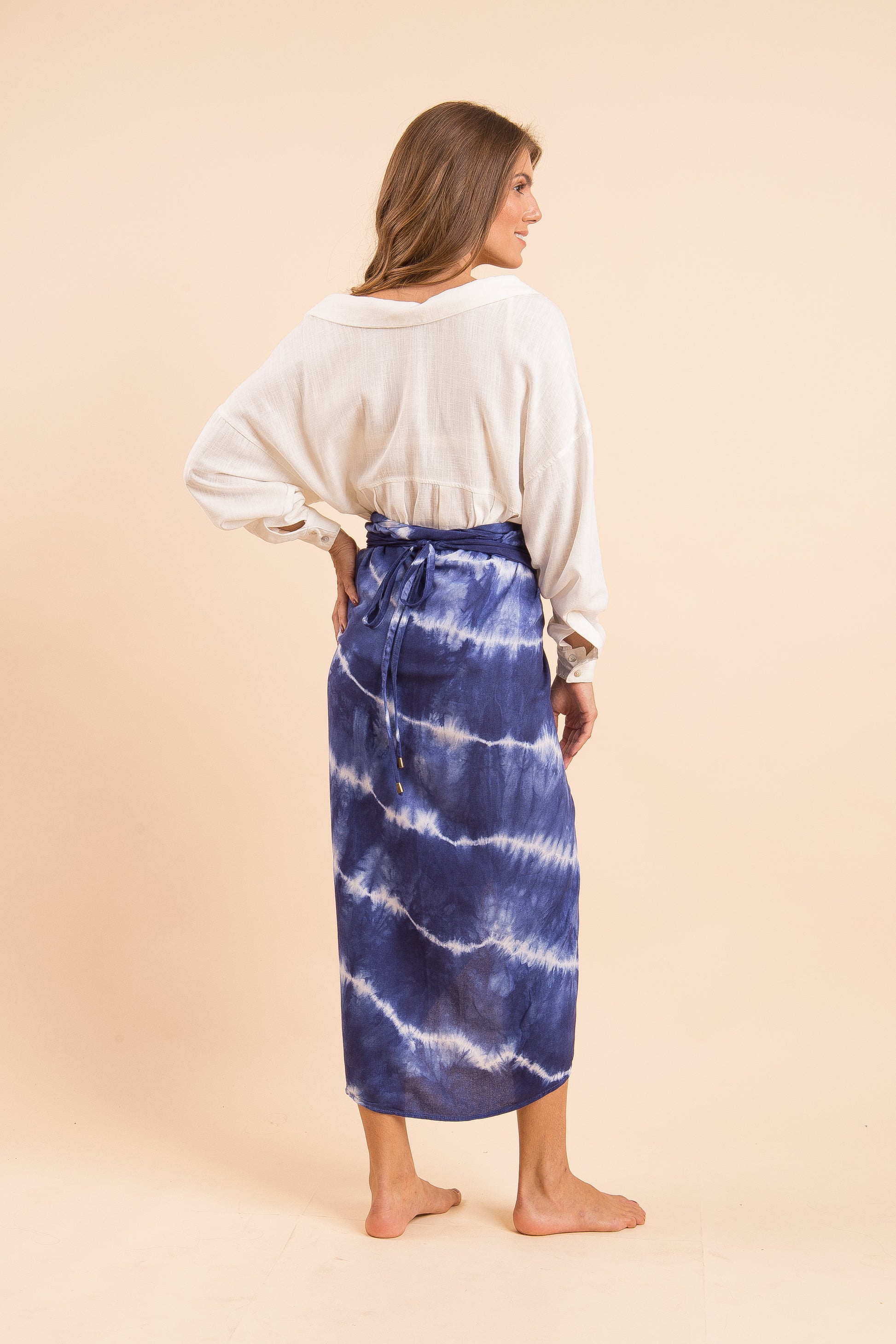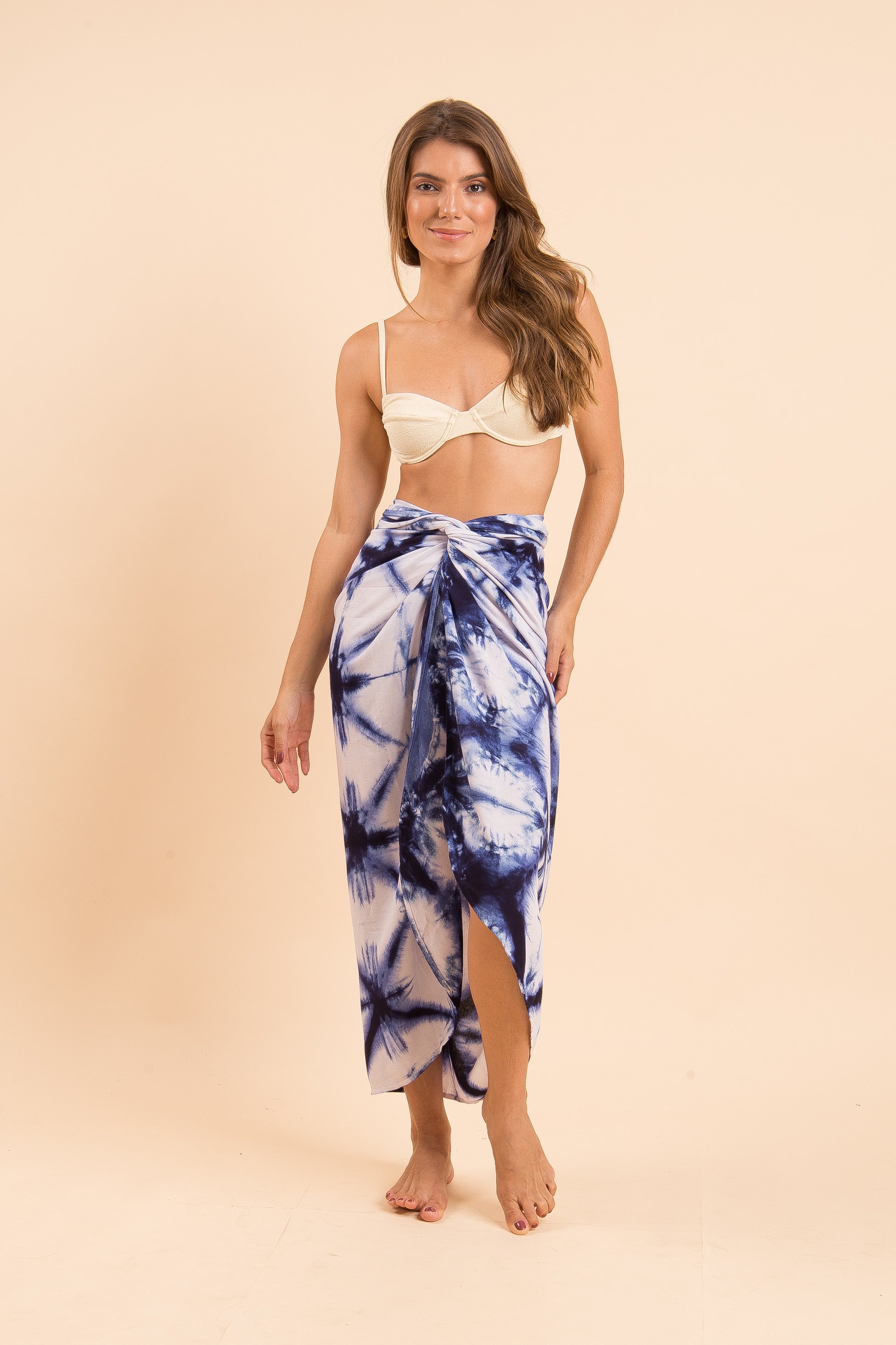 Detalhes: Fechamento por amarração com faixas; Tamanho único; Comprimento midi, sendo possível regular o tamanho da cintura através da amarração.